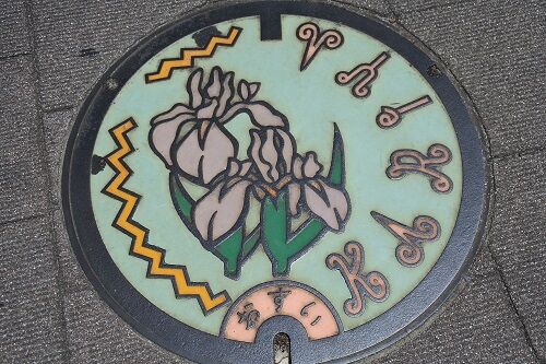 市の花「カキツバタ」と「KARIYA」の文字がデザインされています。 JR東海道本線刈谷駅付近にたくさんありました。 色や雰囲気が少し違う蓋なので多めに載せます。