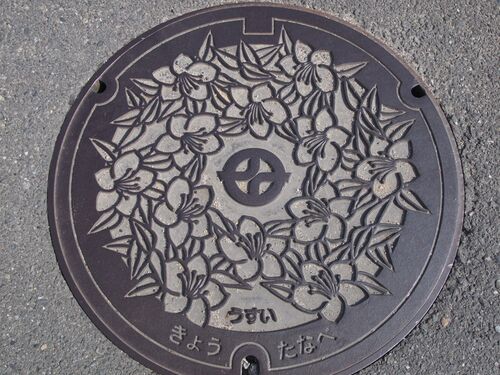 市の花「ひらどつつじ」がデザインされているのはマンホールの蓋ばかりでなく消火栓の蓋、仕切弁の蓋も。 ハンドホールの蓋です。 2011/04/27撮影